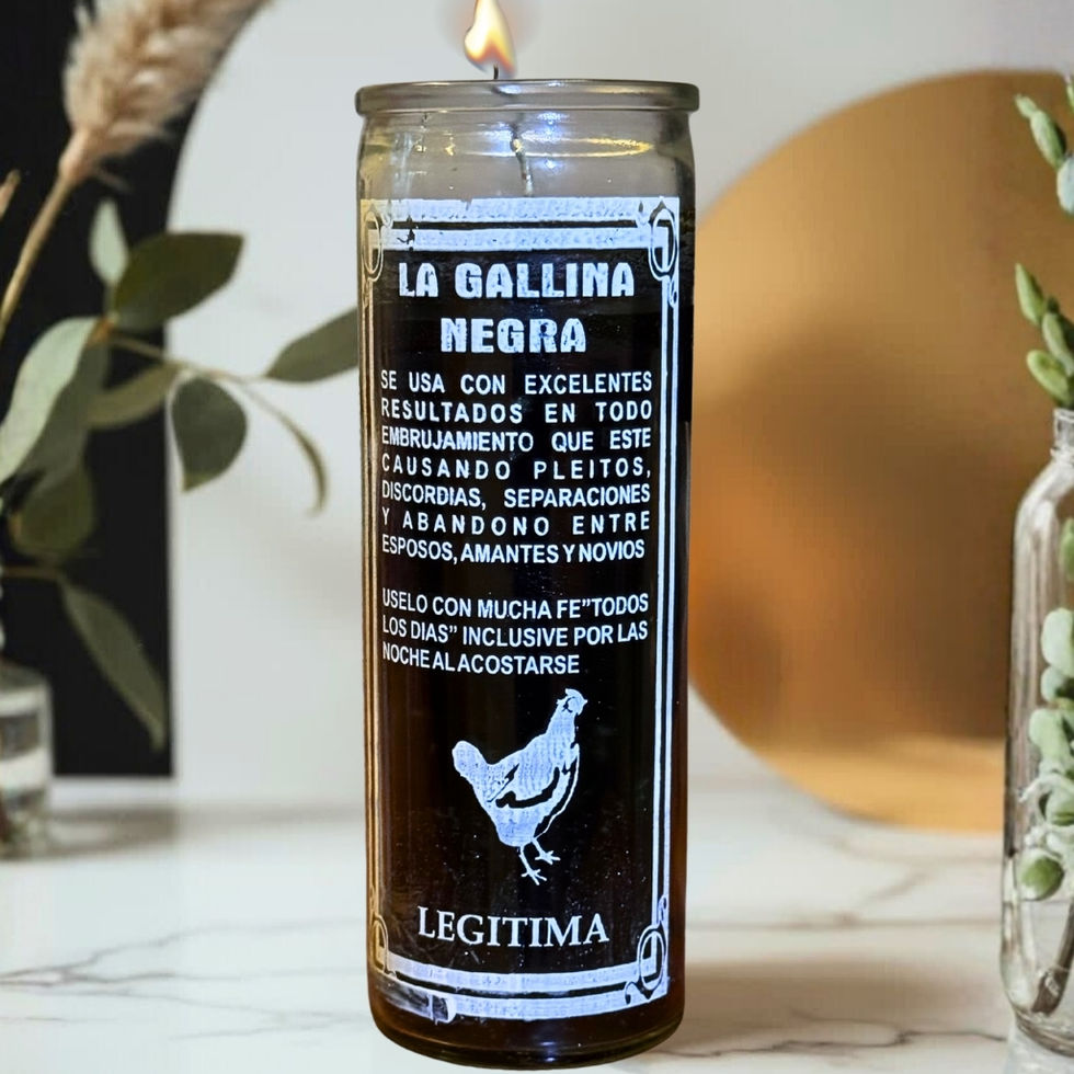 La Veladora Gallina Negra está diseñada para protección extrema, alejar energías negativas y romper trabajos de magia negra. Su energía intensa y poderosa actúa como un escudo, repeliendo influencias dañinas y revirtiendo hechizos.